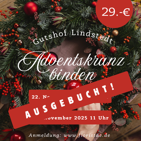 veranstalten wir das Adventskranz Binden im Rittersaal des Gutshauses in Lindstedt. Auf Strohrömer wird frisches Grün gebunden und zusammen gestalten wir deinen individuellen Adventskranz aus.